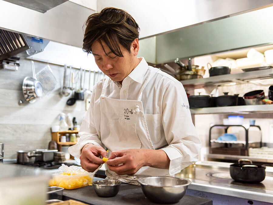 ここを拠点にして、今後は自分が外に出ていくことを増やしたいと思っています。シェフ同士のコラボや海外も視野にいれつつ、「行った先にあるもの」で料理ができるからそれを生かしていきたいですね。とくに地方の食材については、20年という経験値とそこから得たスキルが生む説得力はあると思っています。いろいろな土地で、初めての食材や人に出会えば、いろいろ勉強もできますしね。まだまだ知らないことはいっぱいだし、楽しみながら吸収したい。