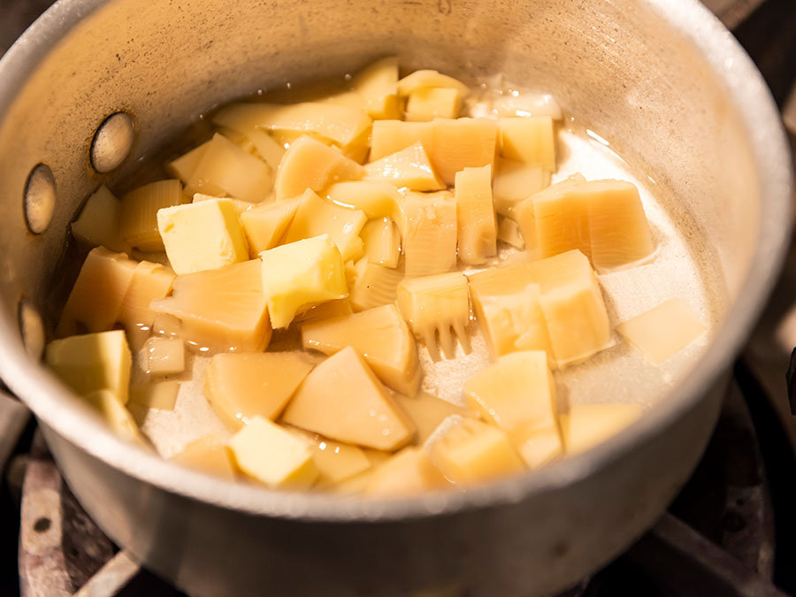 「僕、すごいタケノコに執着を持ってるんです(笑)。毎年いかにおいしく炊き上げて、香りとともに表現するかを考えています。和食屋さんに行くと、それぞれの店にこだわりがあるので参考にしています」と坂本シェフ