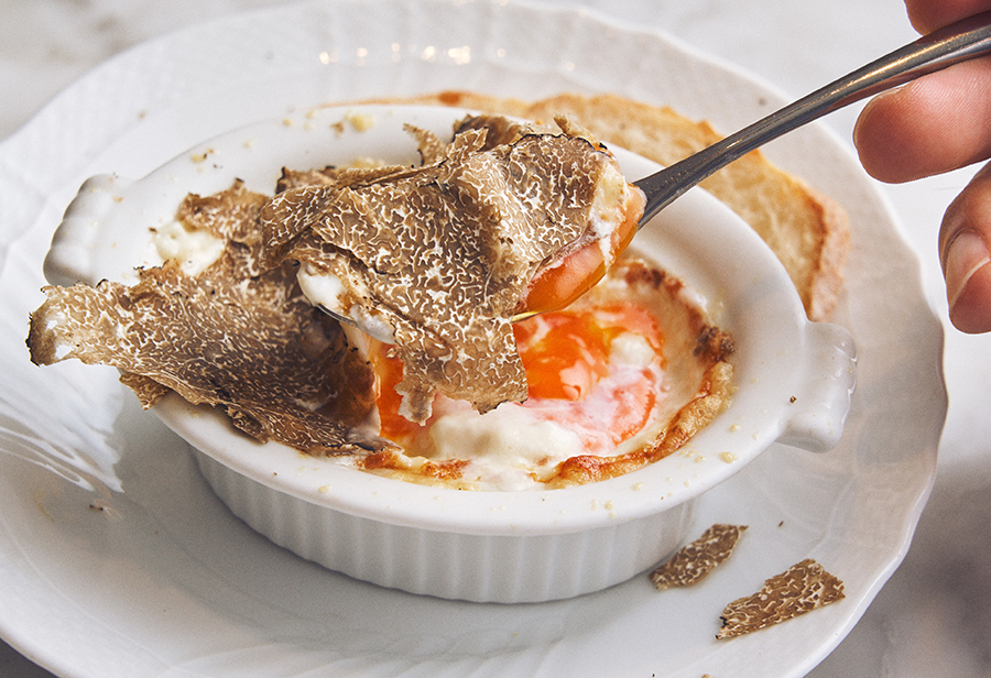 【la Brianza】のスペシャリテ『トリュフのグラタン ピエモンテ風』。卵とパルミジャーノレッジャーノ、ベシャメルを層にして焼き上げ、トリュフをたっぷりと。