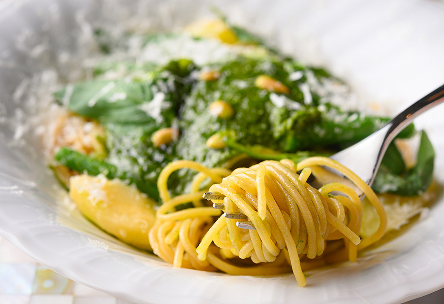 大型店であるということは、新型コロナウイルスによるこの状況を経たからこそ“あり”だと思いました。まず、大型店だと一つの食材をさまざまな料理に使えますので、食材の廃棄率を減らせます。また、誰もが気兼ねなくカジュアルな値段で楽しんでいただくには、たくさんのお客様が来店することが前提でないとできません。サービスの効率化も考え、タッチパネル式の注文システムなども導入しています。 コロナ禍で真剣に考えたのは、人々の健康を考えた“ウエルネス”、そして、地球の未来を考えるSDGs達成への取り組みでした。それぞれが健康に気を遣い、食事を考える時代、そうしたニーズを満たすものは必要でしょう。ですから、米澤シェフにヴィーガン料理の監修をお願いし、糖質制限中の方でもパスタを楽しんでいただける「ZENB