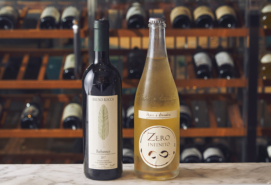 イタリア各地から揃えたワイン。ソアヴェやブルネッロモンタルチーノなどのワインが、ハーフで頼めるのも嬉しい。