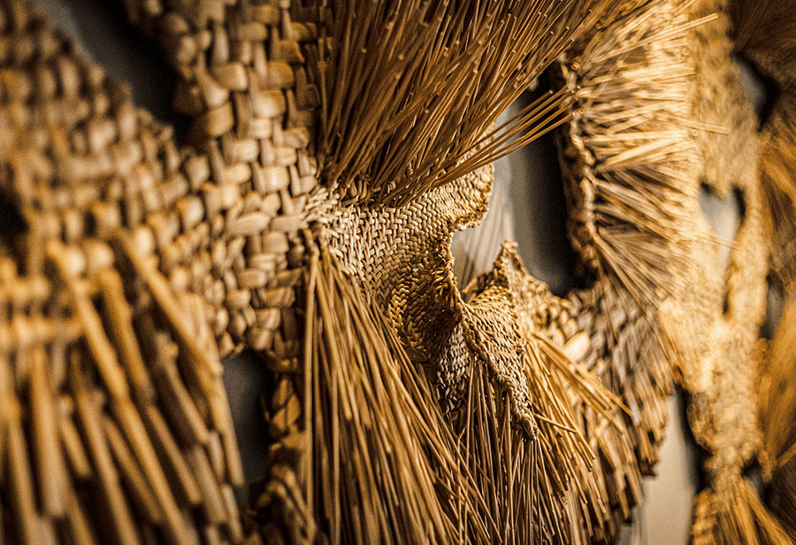 ペルーのアーティストによるオブジェなど、天然素材を多用した【MAZ】の店内。