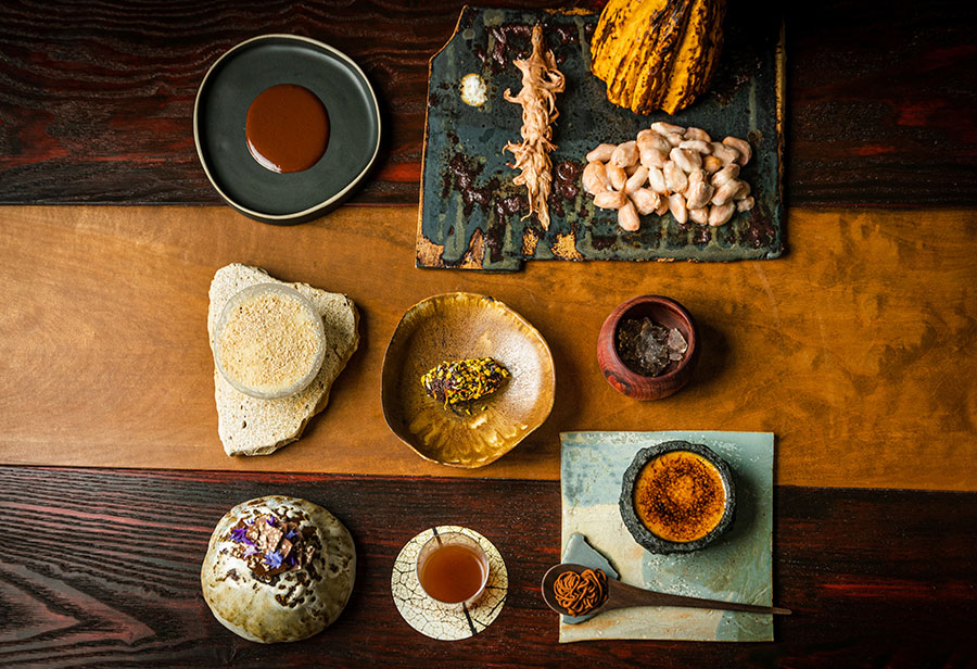 ペルーの9つの高度にある生態系、風景、地理、文化にインスピレーションを得た料理を、日本の食材80%、ペルーの食材20%というイメージでつくっていきたいと思っています。日本からは、おもにシーフードを。また、たくさんの根菜や様々な植物、ハーブ、果物も日本のものです。ペルーからは、アンデスの根菜とアマゾンの農家が育てたカカオ、私たちが栽培するコーヒーなどを使用しています。東京でペルーの生態系を旅するような、そんな食体験を提供したいと思っています。