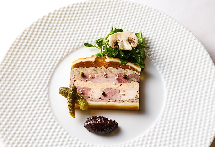 『蝦夷鹿、鶏、鴨のパテアンクルート』は、新たな門出を迎えた自身の原点、和歌山時代のスペシャリテをそのままに。