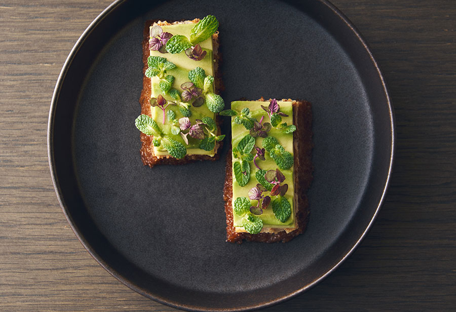 故郷カリフォルニアの味、『アボカドトースト』は、たまり醤油と焦がしバターでつくったソースを染み込ませて。