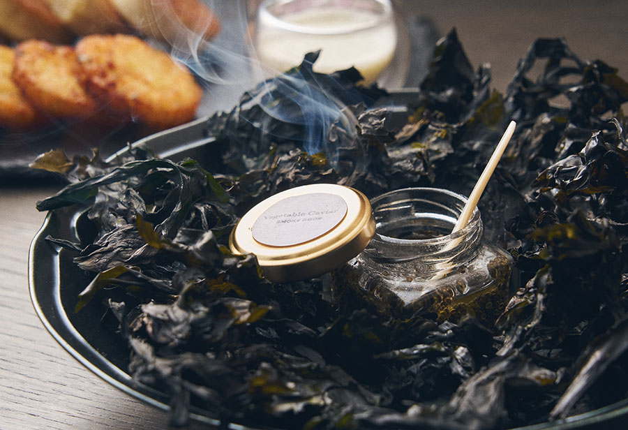 とんぶりにキャビアを思わせる香りを加えるために活躍するのが海藻。昆布バターや乾燥したワカメを使う。