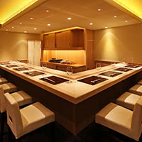シーフード専門店を意味する“マリスケリア”を標榜するとおり、メニューの柱は魚介類。「銀座の鮨店で通用するネタかどうか?」という高い基準を設け、時にスタッフ自ら築地に出向き、目利きしています。