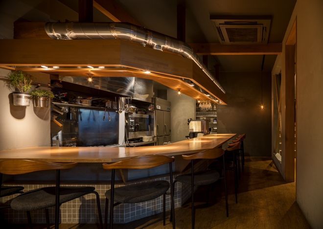 店内はウッディな内装、フランスパリの酒場のような雰囲気です。店主がこだわってセレクトしたワインと、丁寧に仕込んだビストロ料理をお楽しみください。