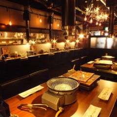 ■肉汁溢れる極上焼肉 店主厳選のA5黒毛和牛を炭火で豪快に焼き上げる。 肉汁溢れるジュシーな仕上がりで極上の味わいを逃しません。 6時間仕込みの自家製ダレが引き立てる深い旨味とともに。 ■蔵造りの落ち着いた広々空間 シックな黒を基調とした木の風合いを大切にした雰囲気。 テーブル席は少人数様用。ご友人やご家族とのお食事会に。 宴会なら最大40名様までOK。2階のくつろぎの座敷席へご案内。 ■ランチはお得感満載!700円~お一人様大歓迎。 11:30からスタートするランチタイムは見逃せません。 全品ライス大盛り無料でお腹も大満足すること間違いなし。 ご予約限定で本格焼肉のテイクアウトも承っております。