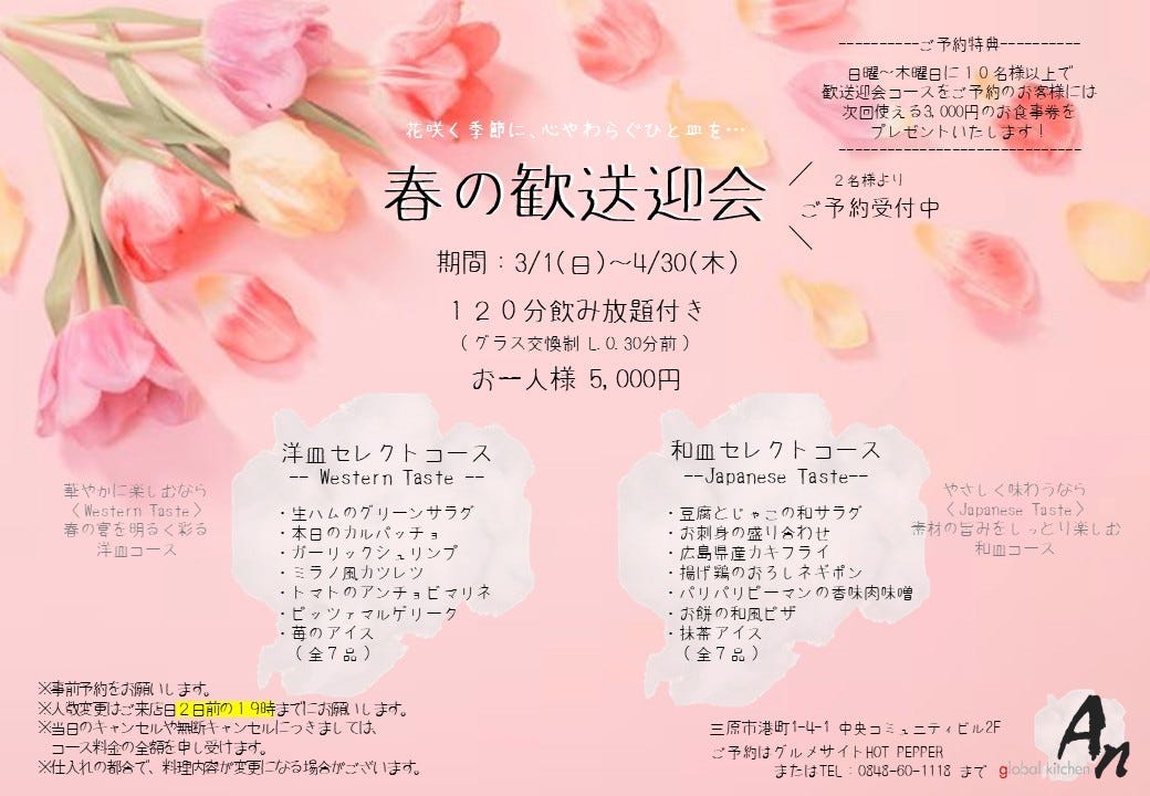 《期間限定》春の歓送迎会プラン -洋- 飲み放題付きコース