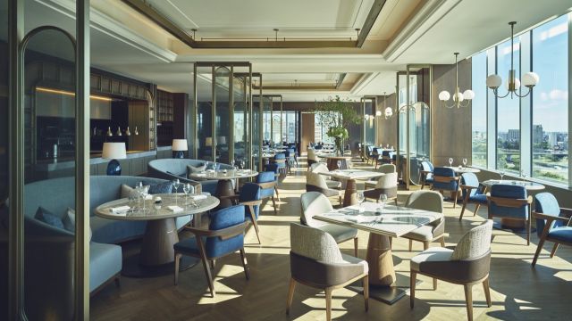 地上約100mからの眺望を楽しみながら、シェフが目の前の鉄板で繊細に焼き上げる極上食材がいただける【海鮮 和牛鉄板焼「21CLUB」】。ふらの和牛など厳選された国内産和牛、アワビや伊勢海老といった海の幸、新鮮野菜など全国から選りすぐった旬の味の饗宴は垂涎必至。ペアリングを楽しみたい北海道産の日本酒や、国内・フランスを中心に厳選したワインが常時150種揃います。 ※ご来店はご予約をおすすめしております。
