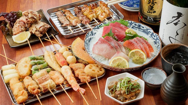 福島駅徒歩3分の高架下で味わう極薄衣の串カツ。 サクサクの食感と秘伝ソースが相性抜群で、2,000円台からお腹いっぱい楽しめる圧倒的なコスパと活気が自慢の名店です。