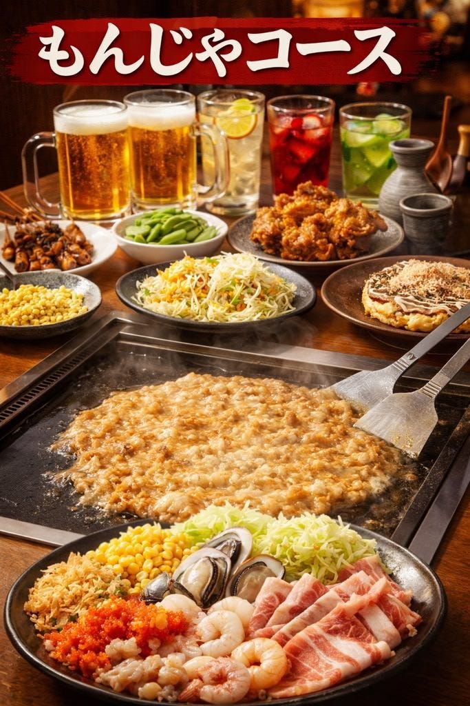 ◆豊富な生牡蠣メニュー 大人気「オイスターカクテル」は新鮮な生牡蠣のぷるぷる食感を存分に味わえる逸品! 牡蠣の魅力を引き立てる様々なトッピングもお楽しみください♪ ◆名物!牡蠣もんじゃ・牡蠣玉(お好み焼き) 新鮮な牡蠣をたっぷり使ったもんじゃとお好み焼きも大好評いただいてます! 別名、海のミルクとも呼ばれるほどバランスよく栄養を含んでいる牡蠣。 海の恵み、旨みを感じる食べ応え満点のもんじゃ・お好み焼きをぜひご賞味ください! ◆コスパ最強の宴会コース 2時間の飲み放題付きのコースがなんと!3,000円~ 2名様からご利用可能なのでデートに、普段のお食事にも♪ ◆貸切宴会もお気軽にお問い合わせください!