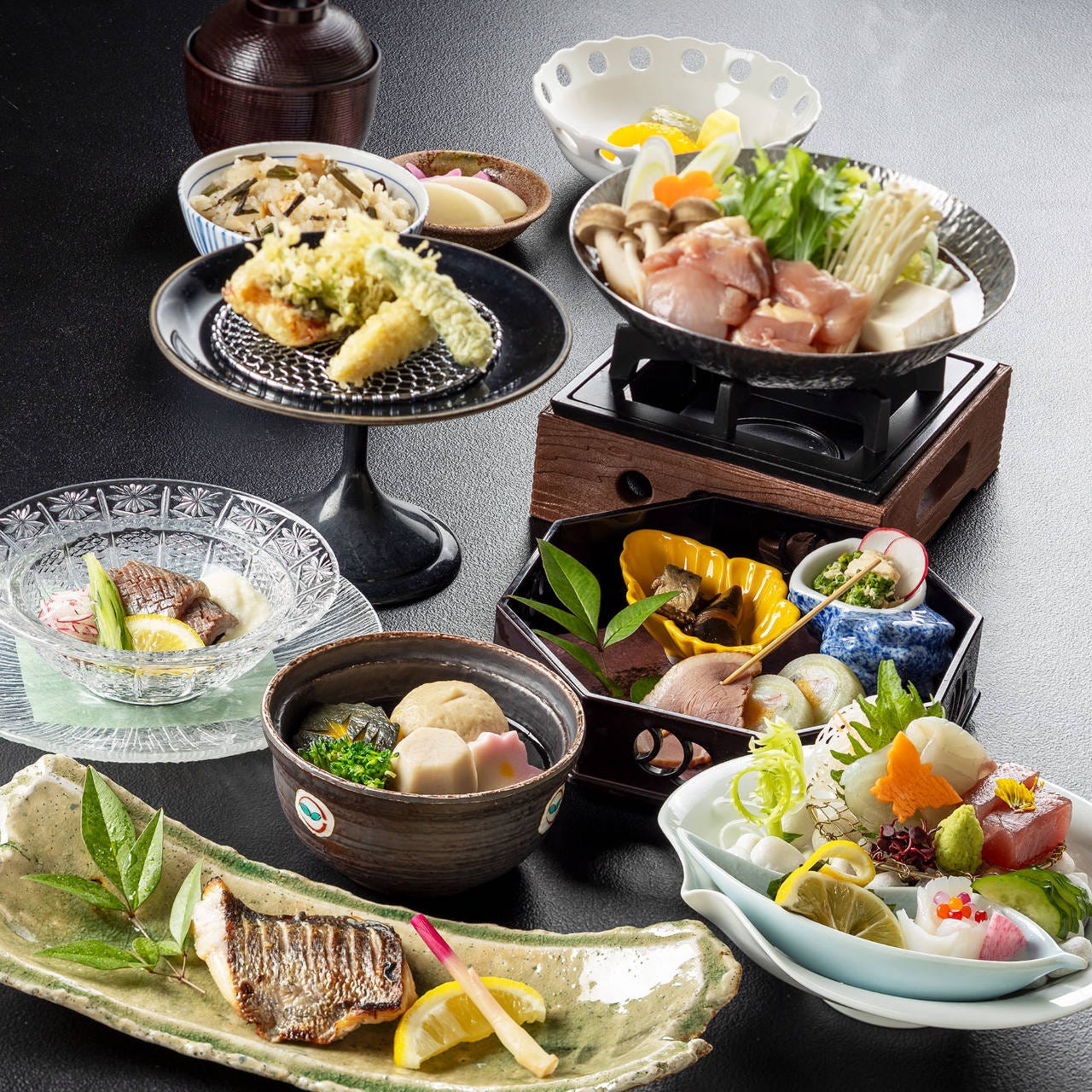 海の幸をはじめ、山の幸、里の恵みまで… 自然に囲まれ食材の宝庫ともいわれる紀州和歌山の 四季折々の素材を贅沢に使った和の逸品がお楽しみいただけます。 料理長が一品一品丁寧に仕上げる 目にも鮮やかなお料理の数々は 匠の技が光る絶品揃い。 季節の会席や一品料理を多彩に取り揃えております。 上質で気品ある時間が流れる落ち着いた雰囲気は ホテル内のレストランならでは。 気軽に楽しめるテーブル席のほか、 ご結納やご法要、ご接待など 大切な方とのご会食にもご利用いただけるお座敷の個室も ご用意しております。