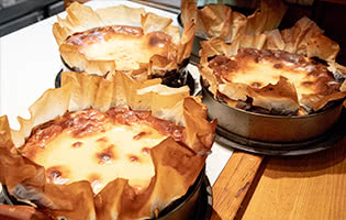 名物チーズケーキが大人気の【ラ・ヴィーニャ】。クリームチーズベースで、飽きのこない甘みとしっとりした口どけ感が抜群。テイクアウトする人も多い。 -