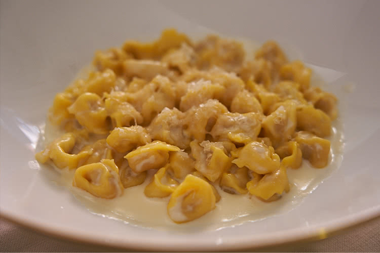 『パルミジャーノ・クリームのトルテッリーニ』さすがのボットゥーラ氏でも伝統的パスタはアンタッチャブルな存在。モデナ伝統の手打ちパスタ、トルテッリーニを最高級のパルミジャーノ・クリームと一緒に食べる。世界最高のトルテッリー二 -