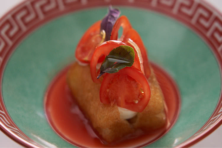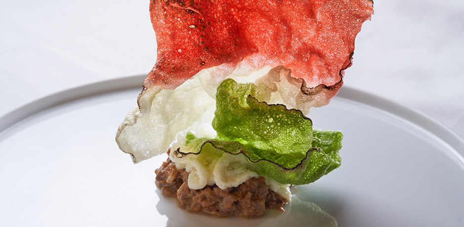 ボットゥーラ氏の料理は一見難解だがほとんどの料理は伝統的イタリア料理をベースにした新解釈だ。ボットゥーラ氏がつねづねいうのは「伝統料理は郷愁の眼差しでなく、批判的眼差しで見つめ直さなければいけない」ということ。つまりこの伝統的レシピは本当にこれでいいのか? と考え直すことが最も重要だ、と言い続けている。『ラザーニャ・クロッカンテ』もそうした料理のひとつで、これはボットゥーラ氏の少年時代、兄弟たちで争って食べたのはラザーニアの一番上の焦げてカリカリになった部分だったという思い出に由来。濃厚で重いラザニアを軽く、クリスピーなフィンガーフードに仕上げたものだ。