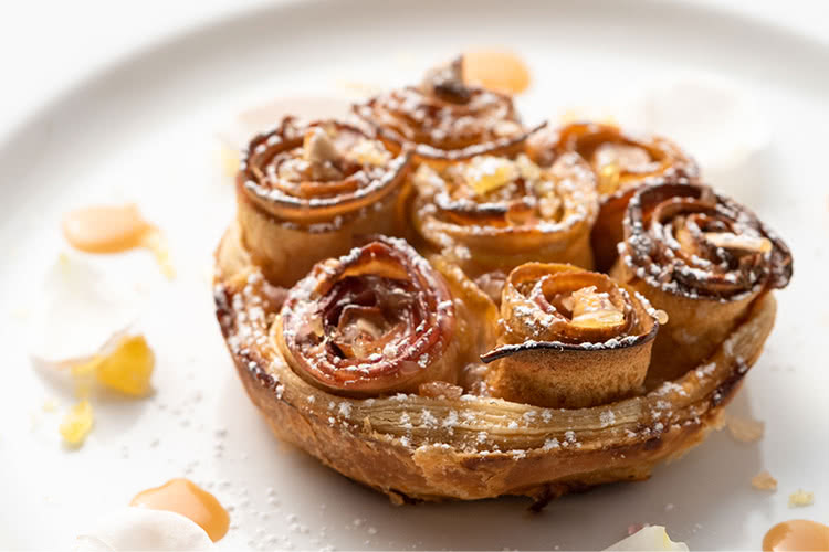 リンゴのタルトは、シグニチャーデザート。リンゴの薄切りを巻いてバラの花のように仕立て、フイタージュ生地に並べて焼き上げる。見た目にも愛らしいデザート 今では、ブルターニュ地方とノルマンディ地方に計3箇所、トータル10haの無農薬菜園を持ち、400種ほどの野菜やハーブ、果物を育てている。菜園は、パサール氏の憩いの場でありインスピレーションの場。週末はほぼここで過ごし、併設シャトーの厨房で様々なクリエーションが生まれる。