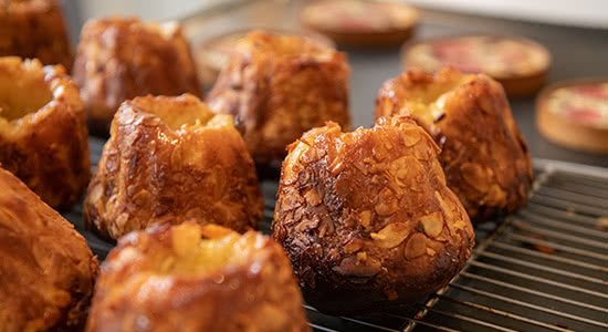 ミルフイユやパリブレストといったクラシックなフランス菓子も、彼のもう一つのスペシャリテ。「形や風味は変えない、でも素材にこだわりぬき、一つ一つのパーツを研ぎ澄ませています」。彼の伝統菓子を食べると、その完成度の高さに、ミルフイユやエクレールはこんなにおいしいものだったのか? と、ため息がでる。