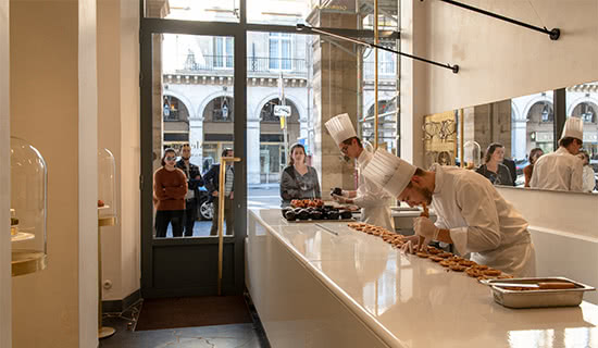 ファインダイニング【ル・ダリ】で提供するアフタヌーン・ティも人気だが、2018年春にはホテル内にパティスリーを併設し、店の前には日々長蛇の列。今、パリで最も熱いスイーツスポットになっている。