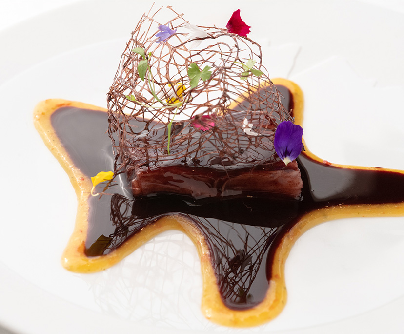 甘酸っぱいカリンをムースリーヌとキャラメルに仕立ててアクセントにし、ベトラーブの甘みを引き立てるL’Arpège ラルページュ