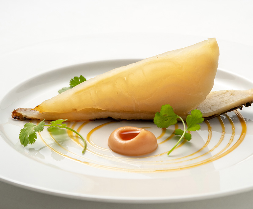 世界から熱い視線が注がれる、【ル・ムーリス】のシェフ・パティシエ、セドリック・グロレ氏。彼のスペシャリテは、様々なフルーツの形を極薄のホワイトショコラで精密に再現し、そのフルーツのおいしさをジュレやコンフィなどに仕立てて内部にたくみに仕込んだ、”フルーツ”シリーズ。「季節が私を導いてくれます」と語るセドリック氏。四季折々の極上フルーツにインスピレーションを受けたこのシリーズは、美しいヴィジュアルと、シンプルかつ印象的な風味で、食べ手に大きな感動を与える。
